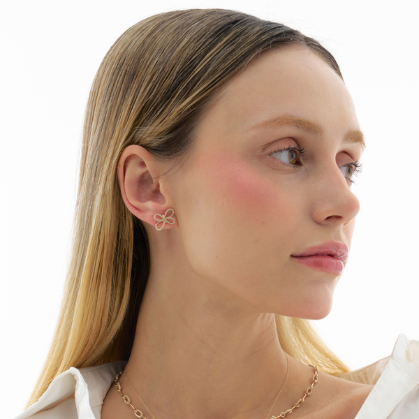 Fiore Bow Pavé Stud Earrings - Moissanite & Gold Plated Sterling Silver