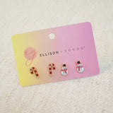 Celebrate the season in style with the Candy Cane & Snowman Stud Earring Set. This playful and festive pair brings a cheerful touch to your holiday looks with charming, seasonal designs.