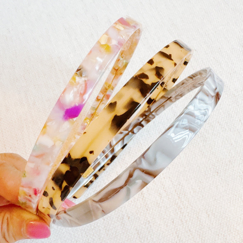 Add a polished touch to your look with our Classic Tortoise Slim & Sleek Headband. Designed with a minimalist silhouette and soft tortoise shell pattern, this lightweight accessory offers all-day comfort with a luxe finish.