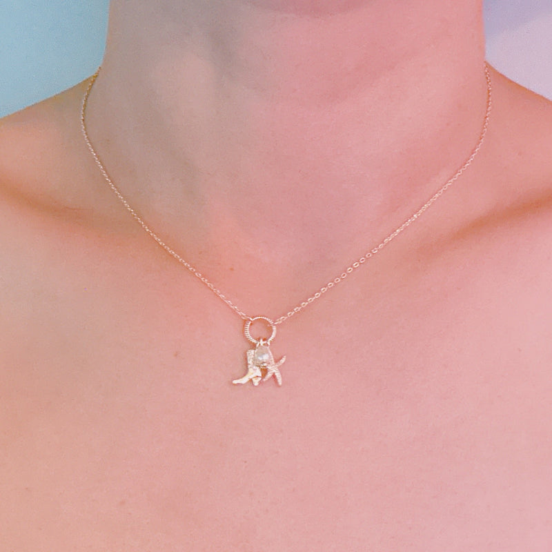 Coastal Cowgirl Necklace – Gold-Tone Chain with Starfish and Western Boot Charms