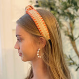 Add a playful yet natural touch with the Color Stitched Raffia Headband. Featuring textured raffia with vibrant stitched detailing, this headband blends artisanal charm with a pop of color—perfect for sunny days and effortless style.