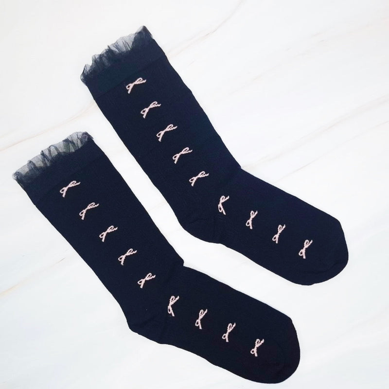 Add a charming and stylish touch to your sock collection with the Tulle Top Bow Lined Up Socks Set. Featuring soft tulle detailing and sweet lined-up bows, these socks bring playful elegance to any look.