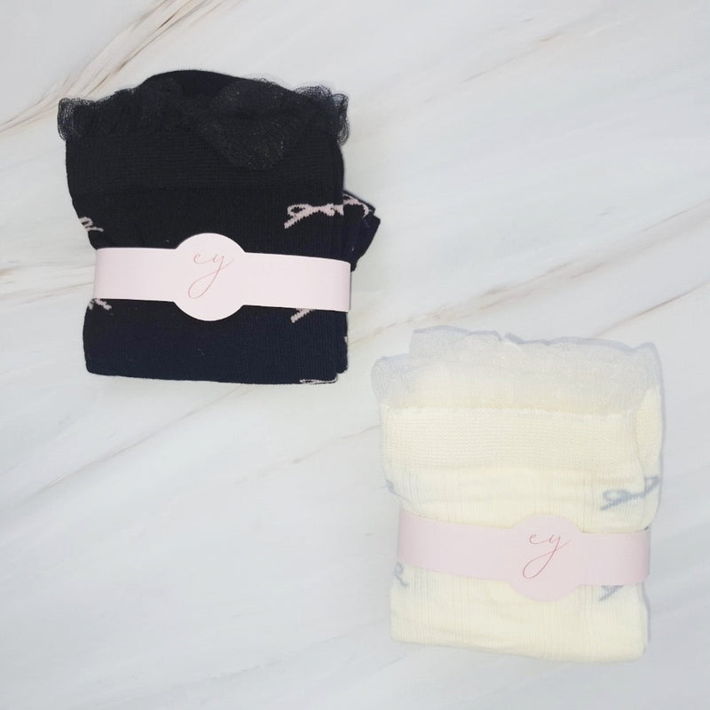 ✔️ Sweet Bow Details – Accented with adorable lined-up tulle bows ✔️ Soft & Stretchy Fit – Comfortable wear with just the right amount of stretch ✔️ Perfect Finishing Touch – Pairs effortlessly with flats, boots, or sneakers